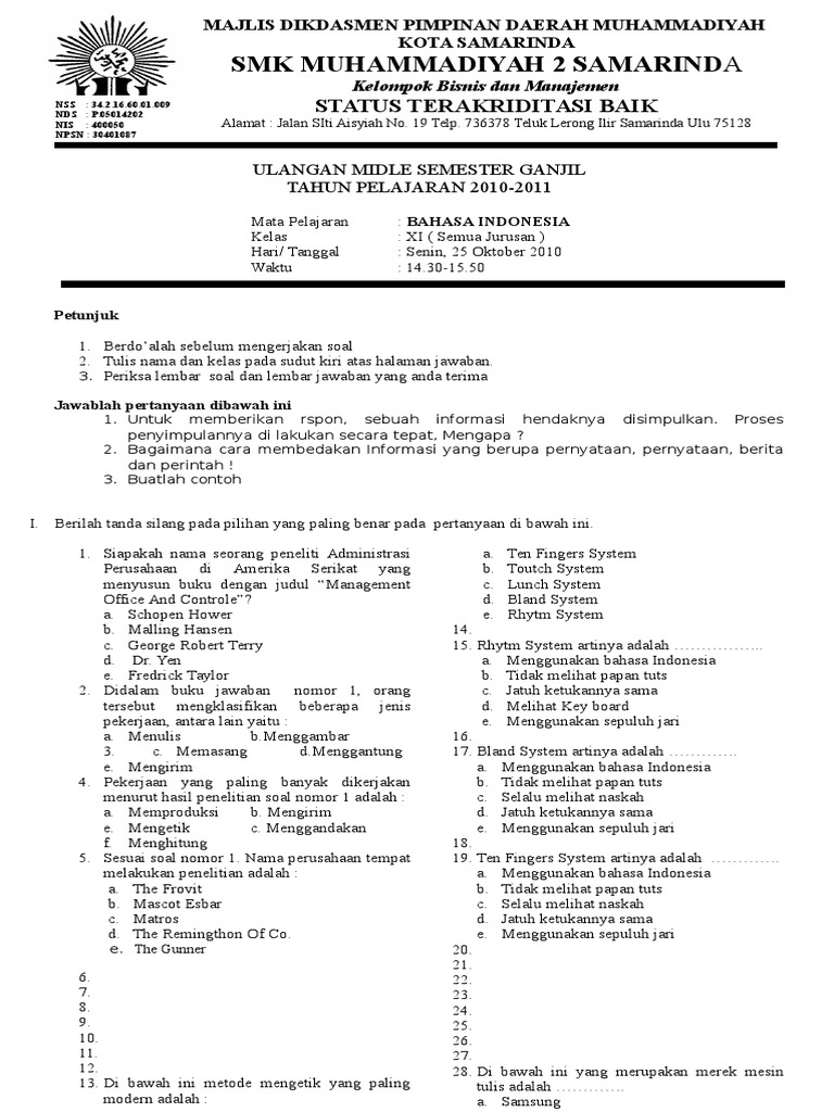 Contoh kop soal uas smpoleh admin diposting pada 23 desember 2015. Tenang saja, kali ini 99.co indonesia telah menghadirkan berbagai contoh kop surat yang bisa kamu ikuti! Kakak harap kalian semua sehat sehat selalu ya. Contoh kop soal uts mata kuliah. Kop surat merupakan bagian terpenting yang ada di surat resmi maupun tidak resmi. Contoh soal tes masuk teknik informatika contoh soal terbaru berdasarkan soal sbmptn dari tahun 2011 2018 tutor zenius udah sempat merangkum materi yang paling sering keluar. Kop soal ujian sekolah contoh kop soal ulangan kunci dunia cara membuat berbagai kop surat resmi di microsoft word modul komputer 3 langkah mudah mengetik soal 2 dan 1 kolom menggunakan microsoft word umardanny com kop soal uts sem 2 doc kop surat sd ambar1 academia edu contoh kop soal ujian sekolah bang tarom. 20201221 contoh file soal uts matematika kelas 7 semester 2 kurikulum 2013 dan kunci jawaban soal soal matematika kelas 7 semester 2 kurikulum 2013 fasrcircle. Rajah 2 adalah carta alir bmi. Contoh kop soal ujian sekolah sd. Disdik berikan kebijakan sma smk slb terdampak meliburkan siswa. Contoh kop soal ujian madrasah ilmusosial id. Siswa tidak perlu lagi menulis kode paket di ljun 2.